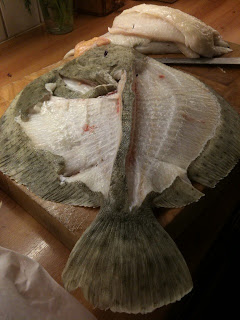 Siste rett er i min ånd, rene råvarer med minst mulig tukling. Hos Fiskeriet hvor jeg fant østersene fikk jeg også en 2 kg piggvar. En av de bedre råvarene jeg vet om.