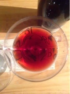 Angripende munn. Konsentrert saft av mørke, syrlige kirsebær. Stor, litt uvant syre. Den ligger som et finkornet lag oppå frukten og svir pent hele veien. God tørring fra fine tanniner og en tydelig bitterhet. Et innslag av spritz er det også. Balansert og meget lang.